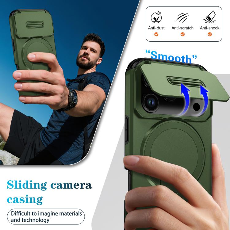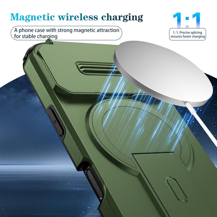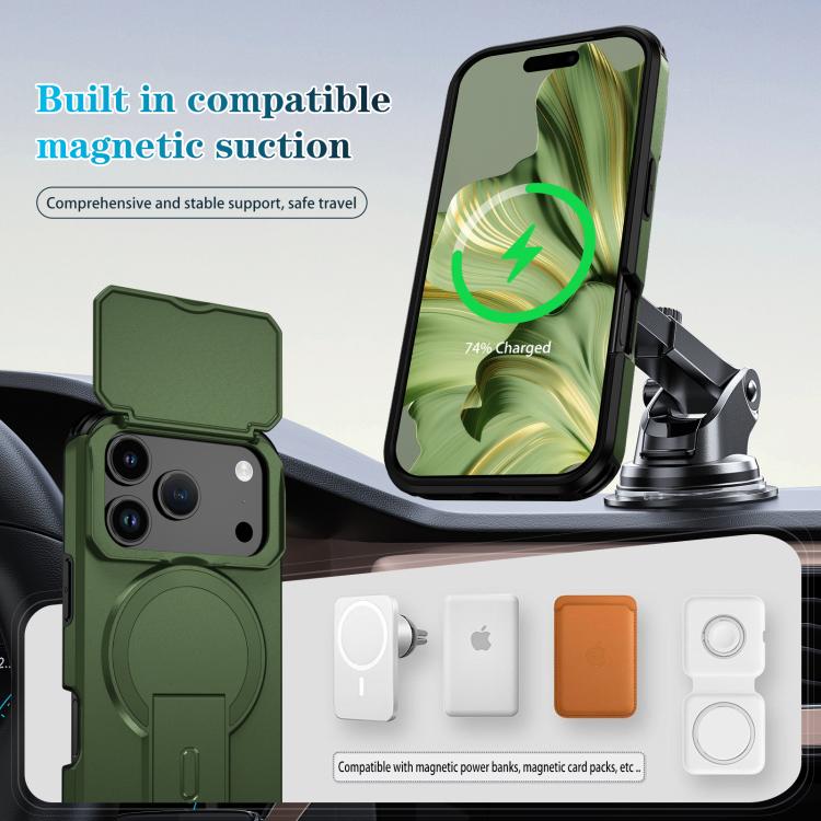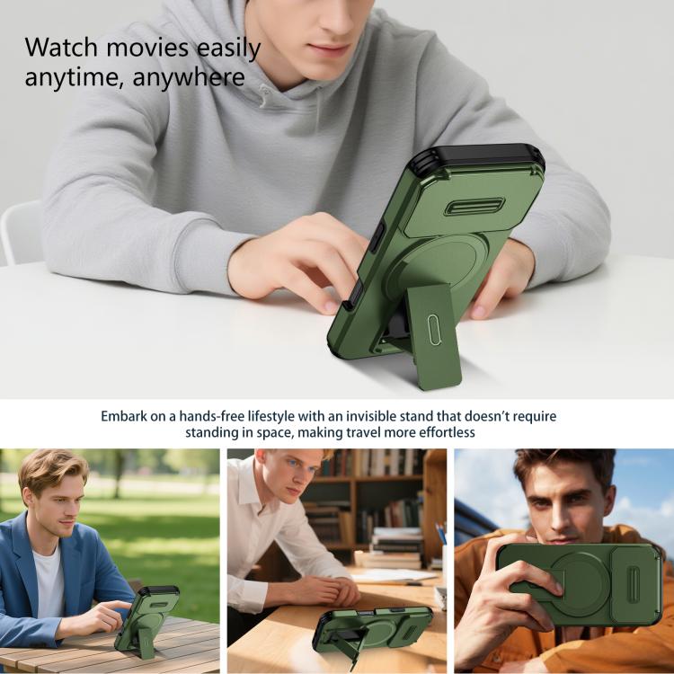 Funda deslizante Camshield con soporte MagSafe para iPhone 17 Pro (verde)