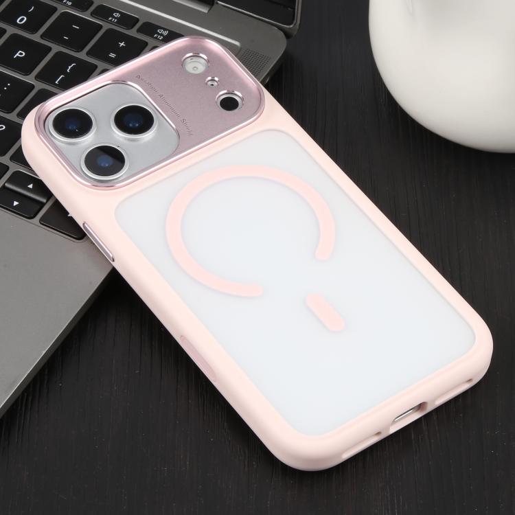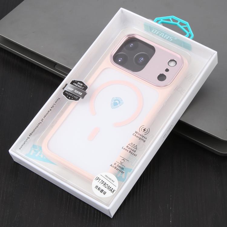 Funda DFANS DESIGN con marco de metal y textura de cuero esmerilado Magsafe para iPhone 17 Pro Max (rosa)