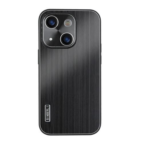 Funda híbrida de aleación de aluminio cepillado para iPhone 14 a prueba de golpes (Negra)