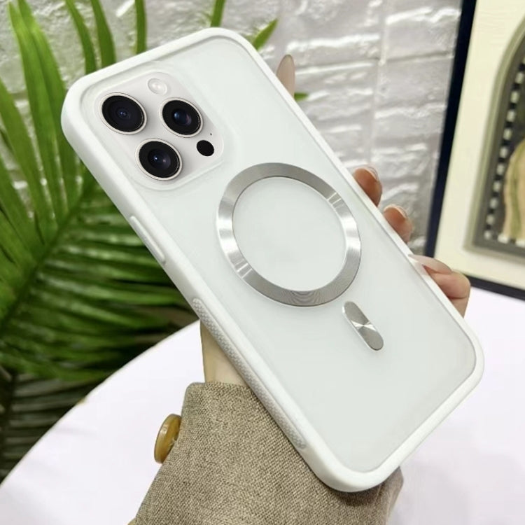 Funda híbrida silicona acrílica Magsafe para iPhone 16 Pro (Blanca)