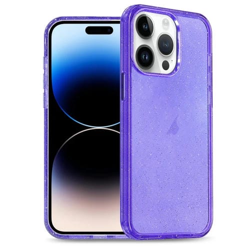 Funda híbrida TPU con purpurina en polvo para iPhone 14 Pro Max (Morado)