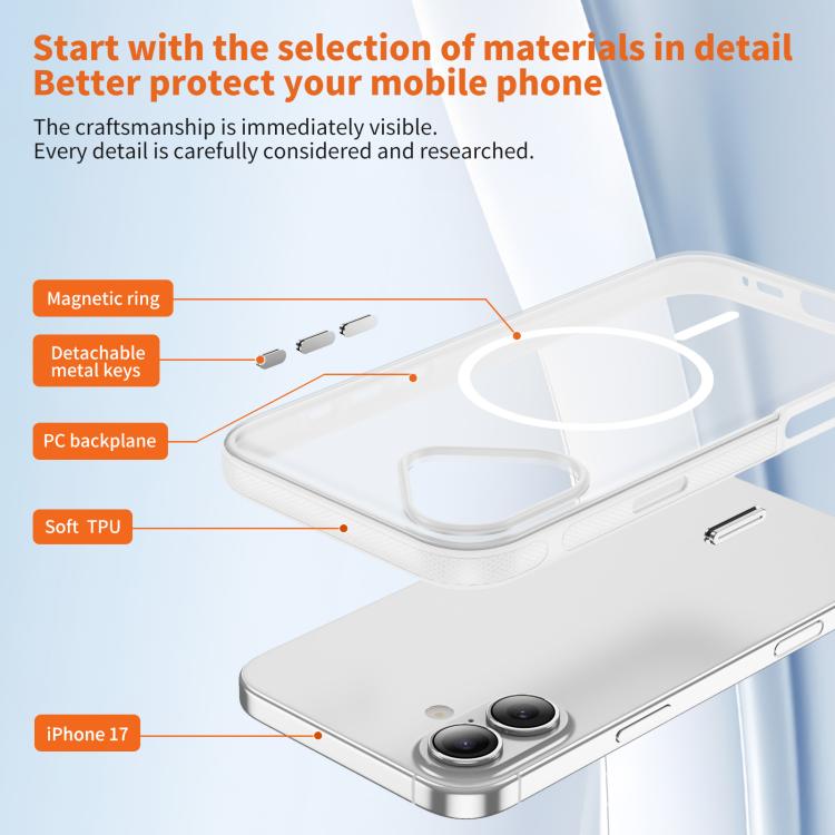 Funda híbrida de TPU Magsafe original bicolor para iPhone 17 (blanco transparente)
