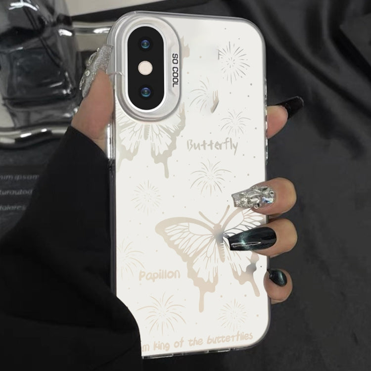 Funda híbrida TPU para PC iPhone X/Xs pintura plateada mariposa hueca blanca