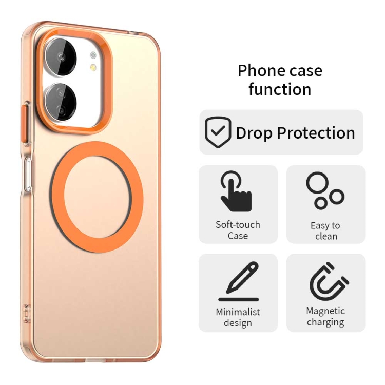 Funda Híbrida de TPU para PC con Protección Contra Caídas y Protección Contra Caídas para Redmi 13R 5G Candy Magsafe (Naranja)