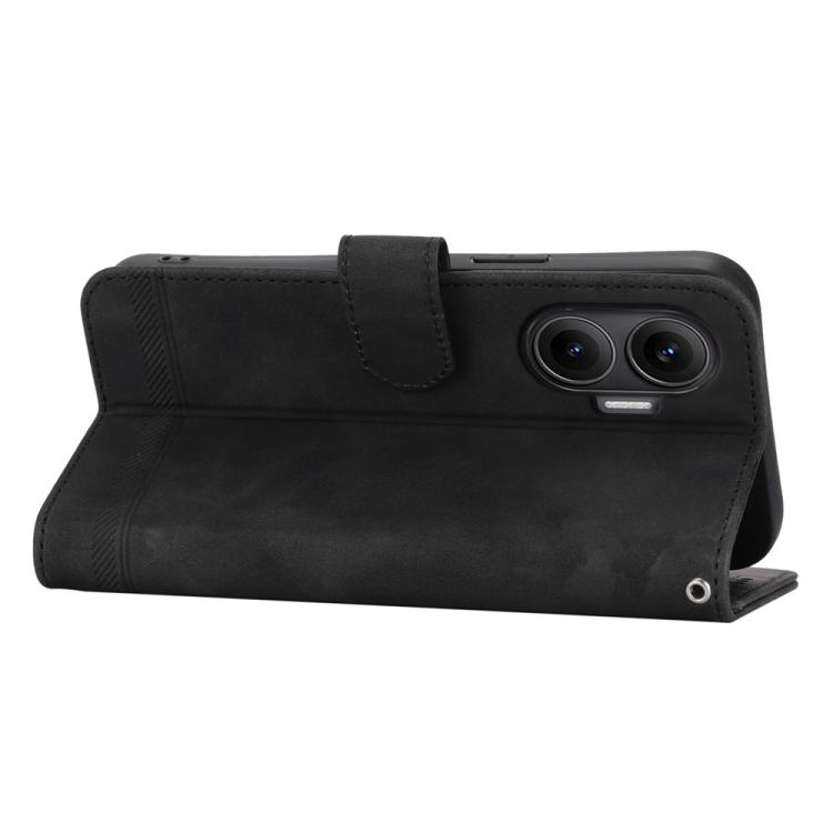 Funda híbrida de TPU y cuero sintético Dierfeng Dream Line para Redmi Turbo 4 Pro y Xiaomi Poco F7 (negra)