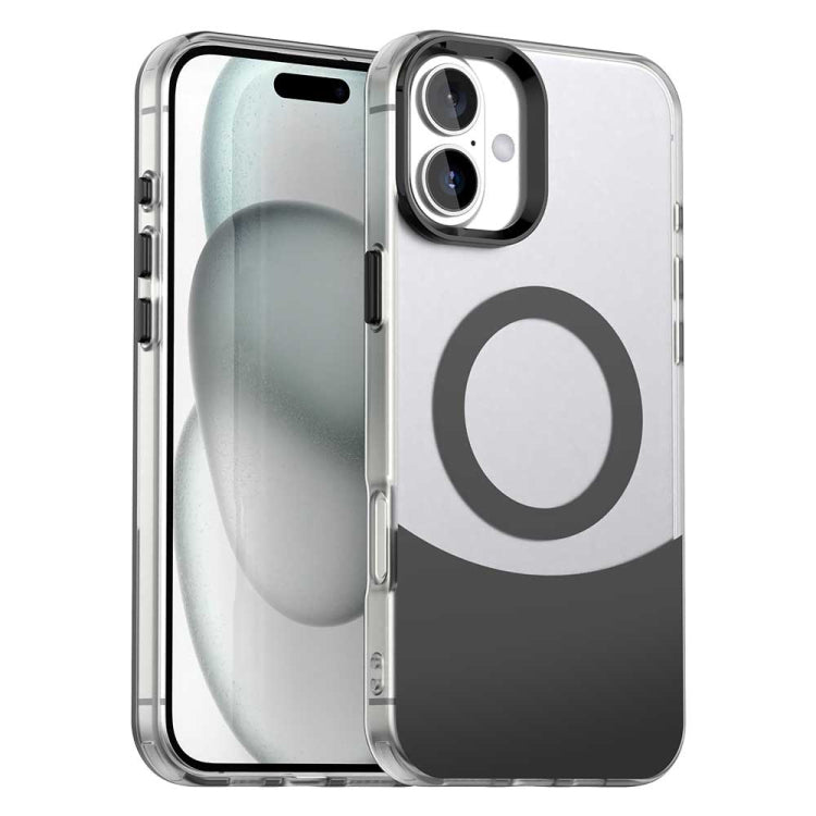 Funda híbrida TPU y PC bloqueo de color para iPhone 16 con imán Magsafe (Negro)