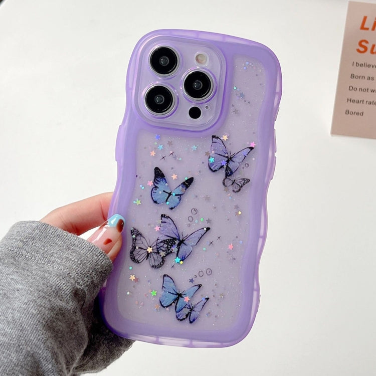 Funda híbrida TPU y PC iPhone 16 Pro Max Borde Ondulado Mariposa (Morado)