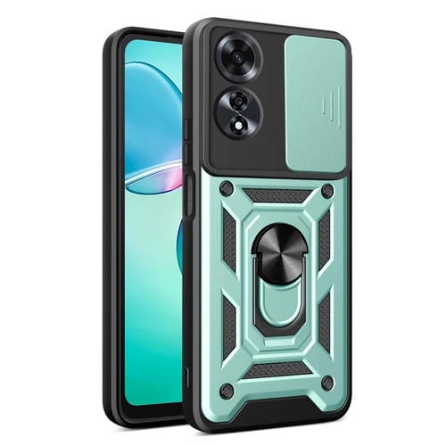 Funda Híbrida de TPU y PC con Diseño de Cámara Deslizante para Oppo A60 4G (Verde Menta)