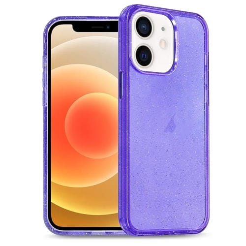 Funda híbrida TPU y PC con purpurina en polvo para iPhone 12 (Morado)