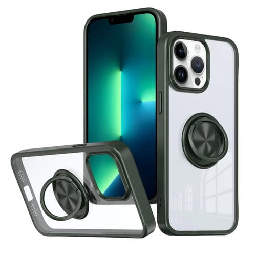 Funda híbrida TPU y PC con soporte de anillo para iPhone 13 Pro Max (Verde)