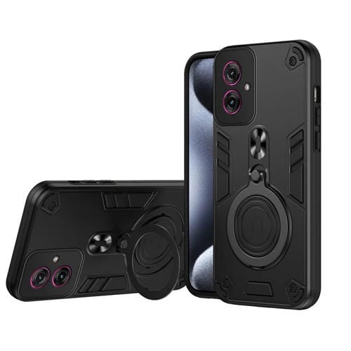 Funda híbrida TPU y PC con soporte giratorio 360° y anillo metal para Motorola Moto G55 (Negro)