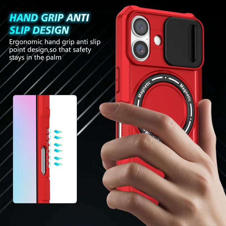 Funda híbrida TPU y PC con Soporte Magsafe y Protección deslizante para iPhone 16 (Rojo)