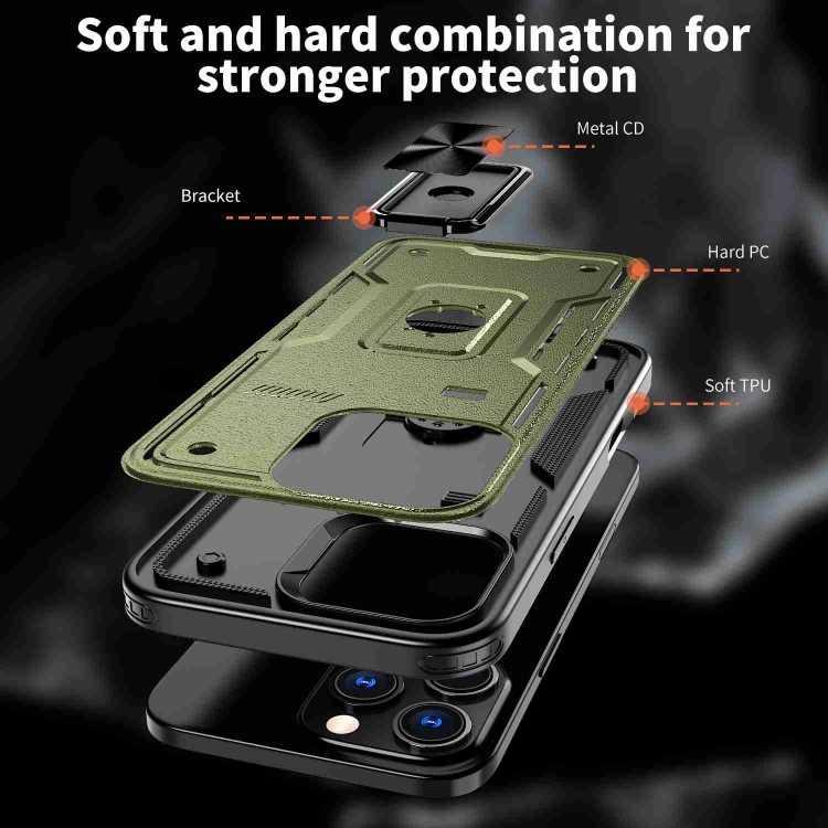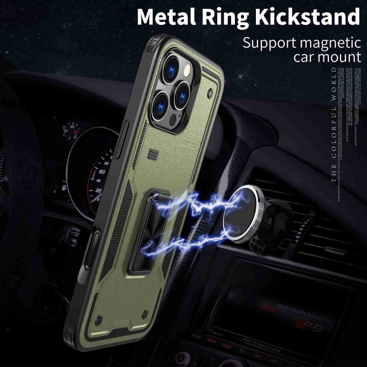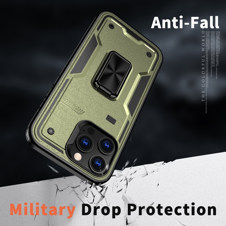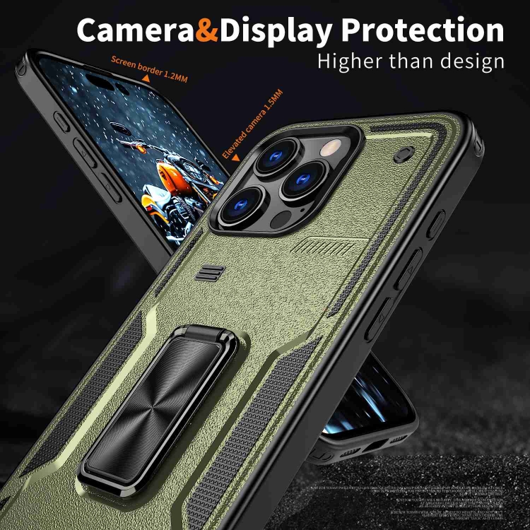 Funda híbrida TPU y PC con Soporte para Anillo iPhone 16 Pro (Verde Oliva)