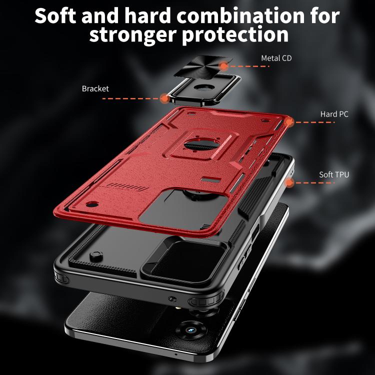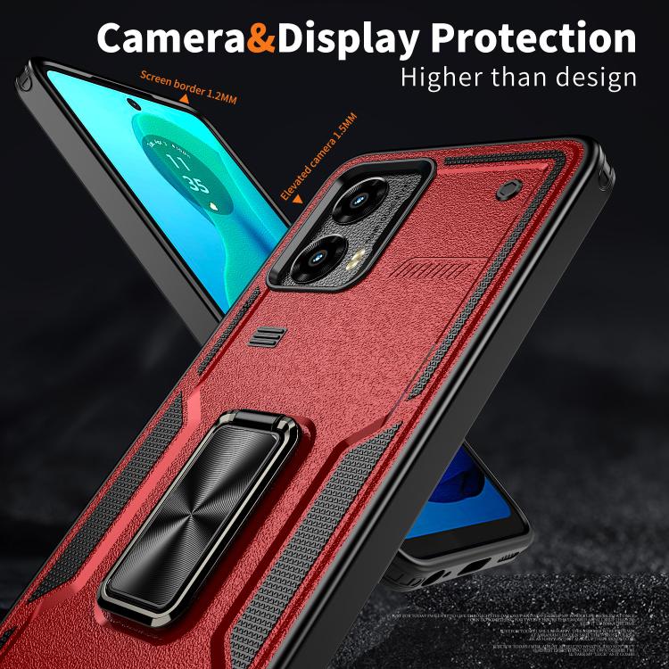 Funda híbrida TPU y PC con soporte para anillo Motorola Moto G 5G (2024) (Rojo)