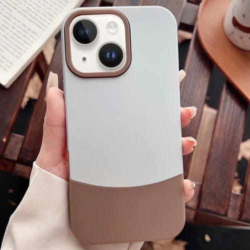 Funda híbrida TPU y PC para iPhone 13 con tacto agradable y contraste de color 2 en 1 (Plateada y Marrón)