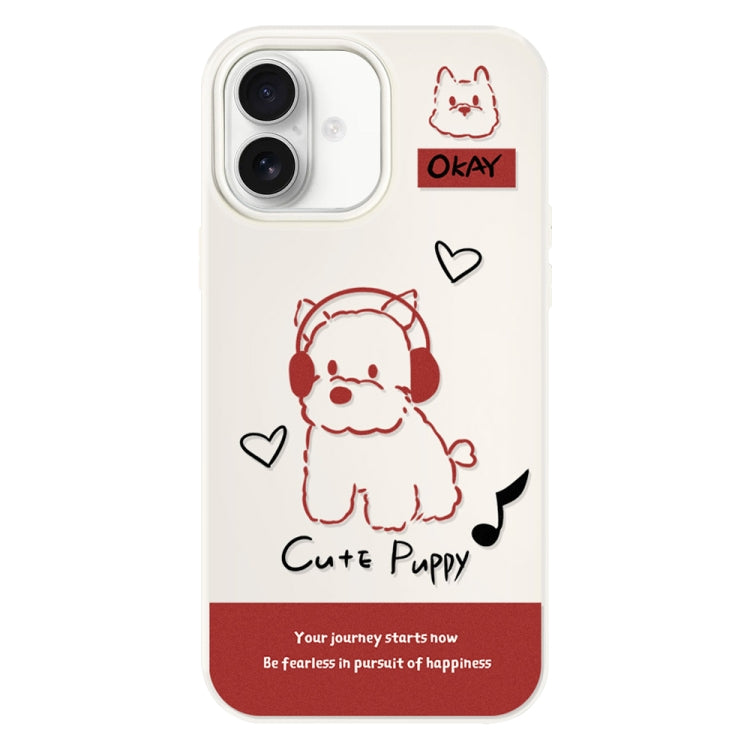 Funda Híbrida TPU Policarbonato iPhone 16 Auriculares Perro (Blanco)