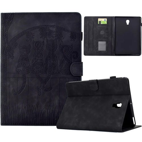 Funda Inteligente de Cuero Samsung Galaxy Tab a 10.5 T590 con Relieve de Gatos (Negra)