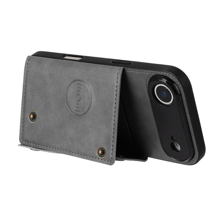 Funda magnética con doble hebilla y ranuras para tarjetas para iPhone Air (gris)