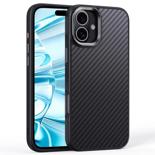 Funda Magnética Fibra de Carbono Kevlar Magsafe para iPhone 16 Plus (Negra)