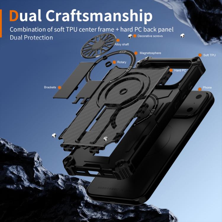 Funda MagSafe con eje giratorio y soporte de camuflaje para iPhone 17 (fibra de carbono negra)