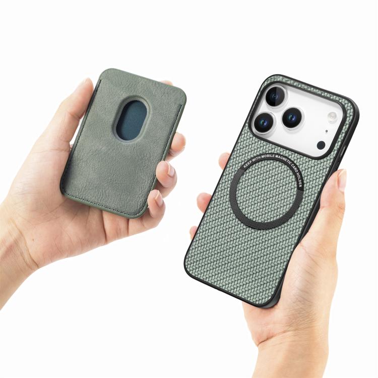 Funda Magsafe de cuero y fibra de carbono para iPhone 17 Pro Max (verde)