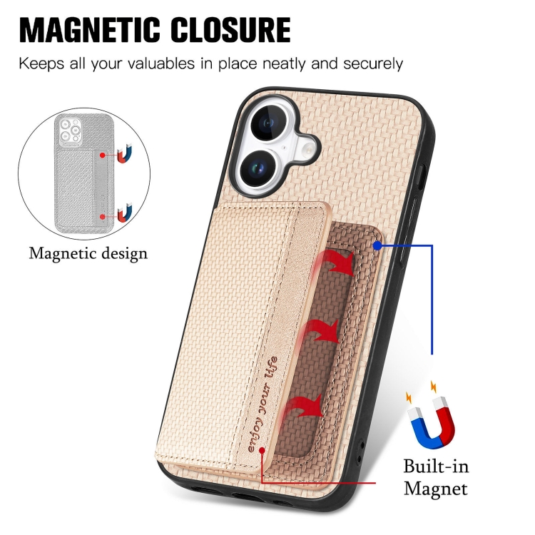 Funda para iPhone 16 con Bloqueo Rfid y Tarjetero Magnético de Fibra de Carbono (Caqui)