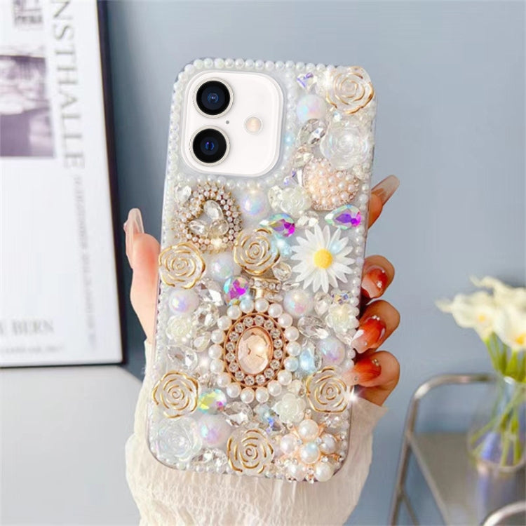 Funda para iPhone 16 Diseño de Rosa con Incrustaciones de Diamantes (Blanca)