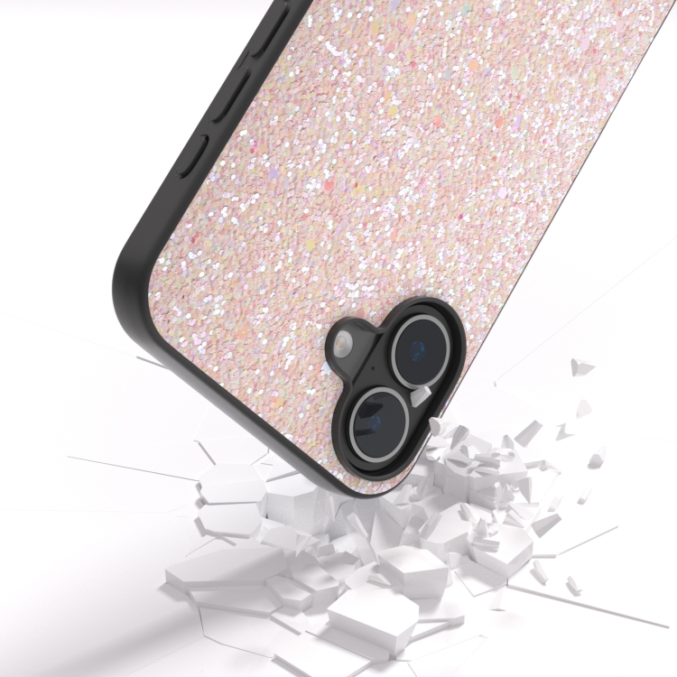 Funda para iPhone 16 Marco Negro Purpurina de Colores (Rosa)