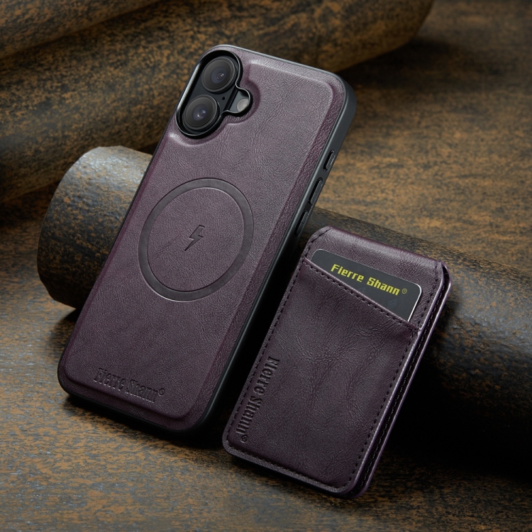 Funda para iPhone 16 Fierre Shann TaRJetero Magnético Piel de Vaca (Morado)