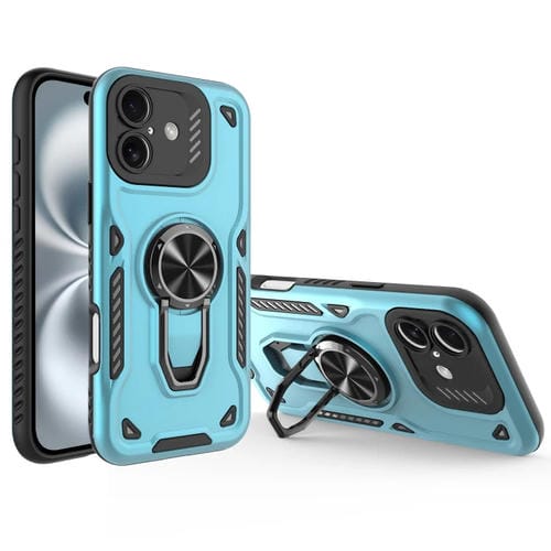 Funda para iPhone 16 Plus Soporte Giratorio Metal Carcasa Magnética TPU y PC (Azul Brillante)