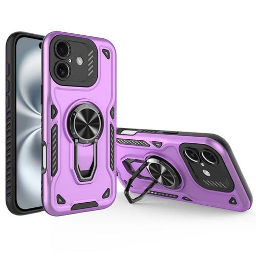 Funda para iPhone 16 Plus con Soporte Giratorio Metal y Carcasa Magnética TPU y PC (Morado)