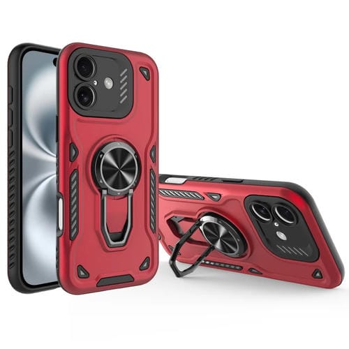 Funda para iPhone 16 Plus con Soporte Giratorio Metal y Carcasa Magnética TPU y PC (Roja)