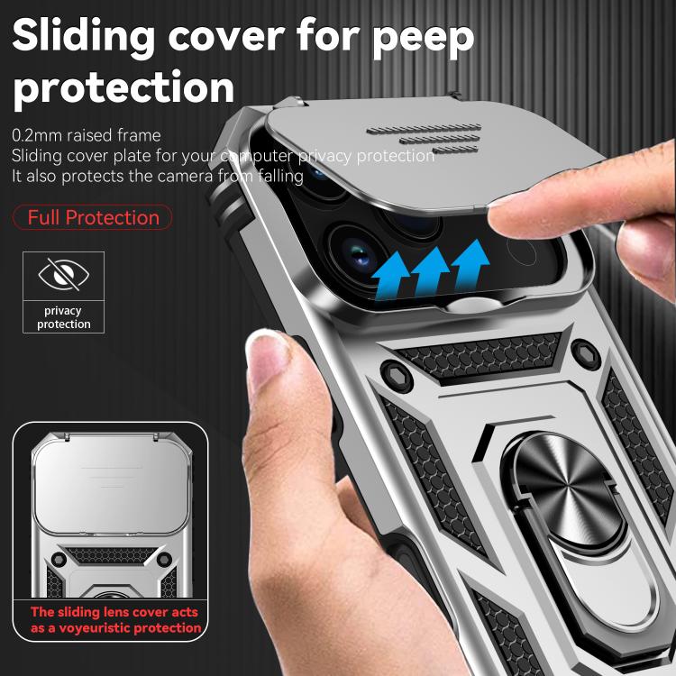 Funda para iPhone 17 Pro con soporte deslizante tipo cámara (plateada)