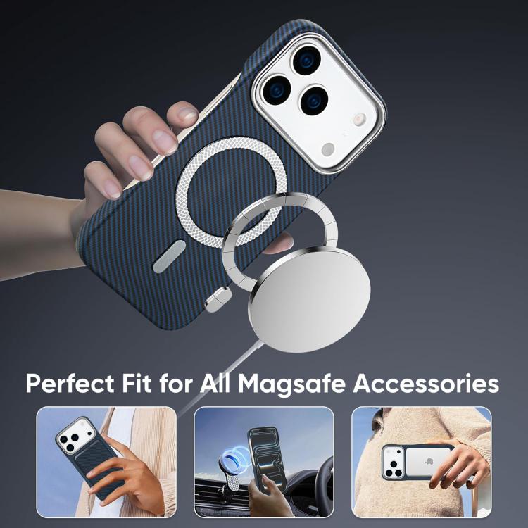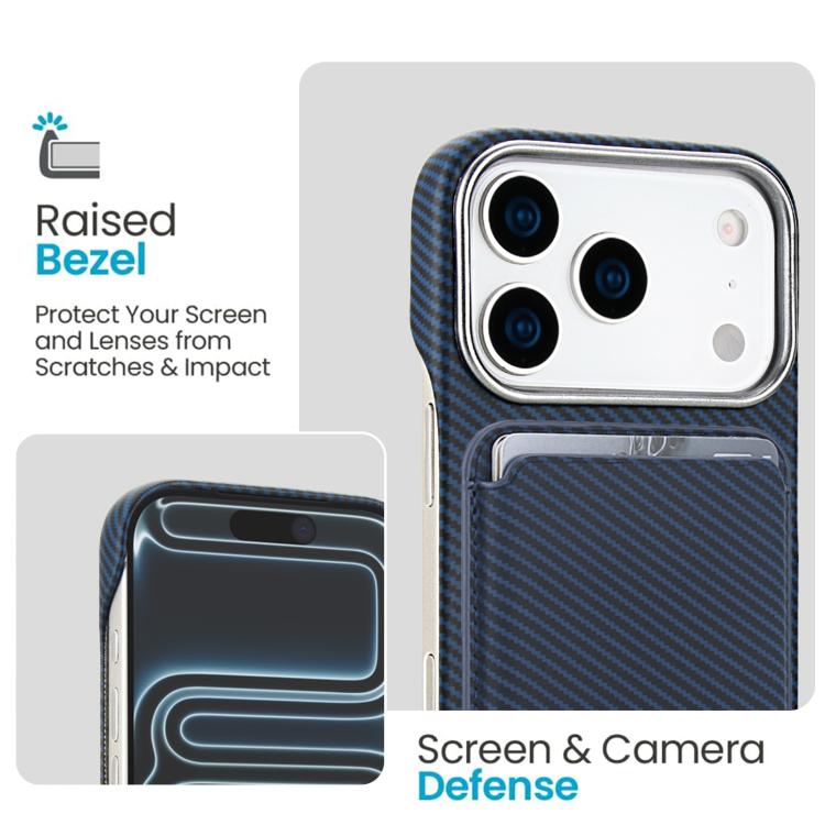 Funda para iPhone 17 Pro Max con tarjetero magnético MagSafe de fibra de carbono (azul)