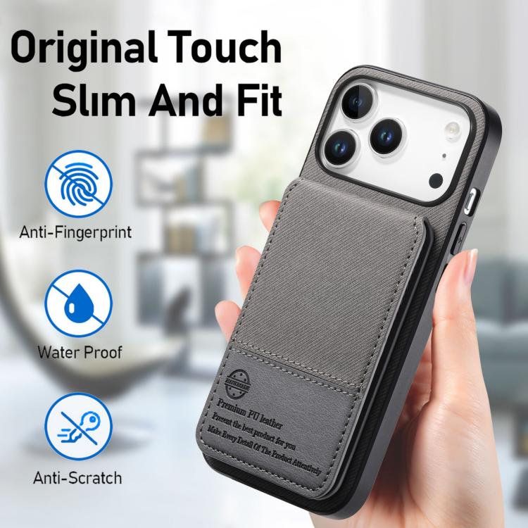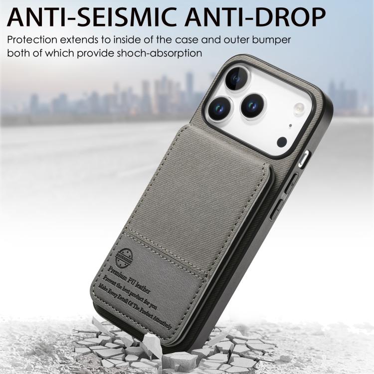 Funda para iPhone 17 Pro Max de piel y sarga con tapa vertical RFID y tarjetero (gris)