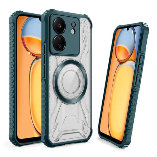 Funda para Teléfono con Airbag Antideslizante de TPU + PC con Textura de Cd Magsafe para Redmi 13C (Verde Oscuro)