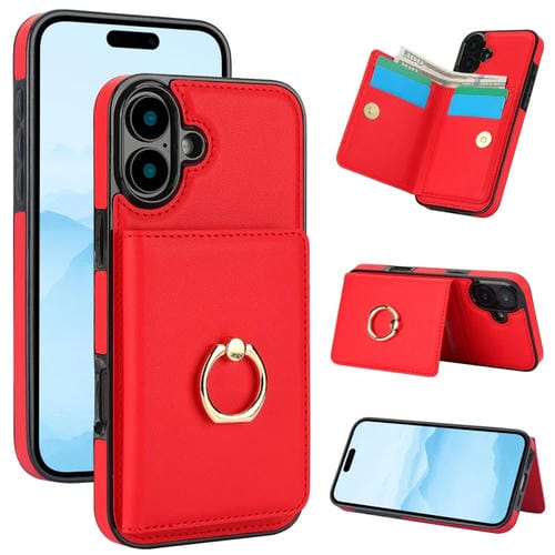 Funda para teléfono con anillo para tarjeta antirrobo Rfid iPhone 16 Plus (Rojo)