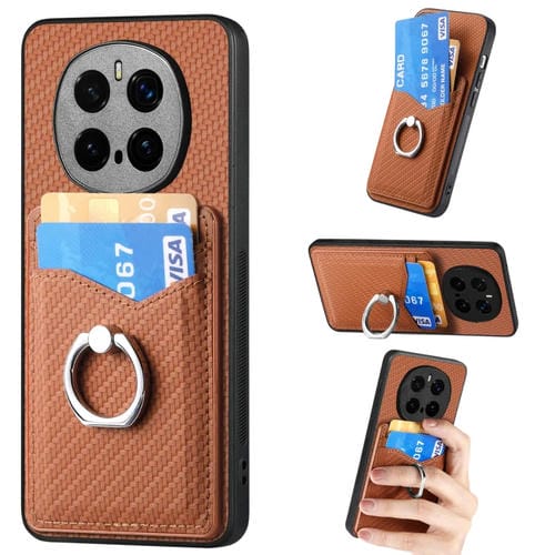 Funda para Teléfono Honor Magic7 Pro con Anillo y Billetera de Fibra de Carbono (Marrón)