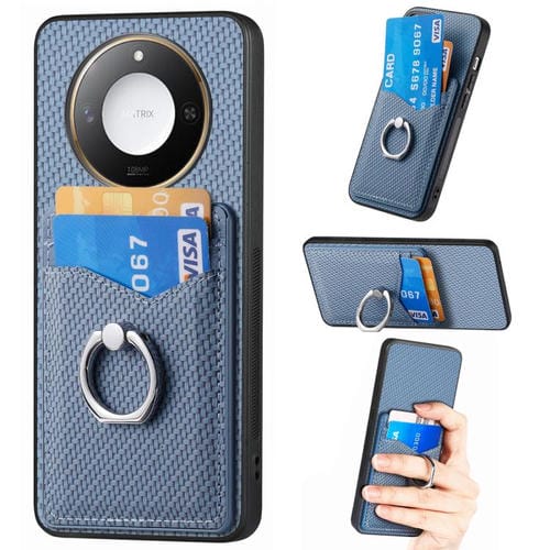 Funda para Teléfono Honor X60 con Anillo y Billetera de Fibra de Carbono (Azul)