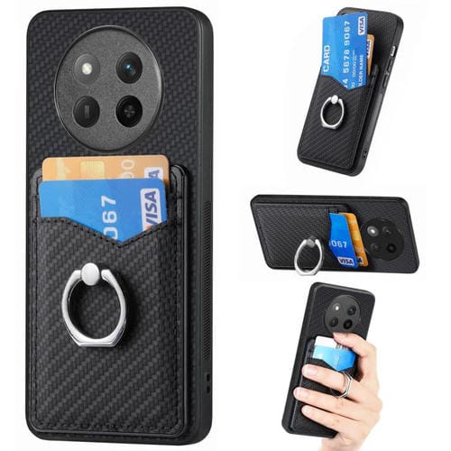 Funda para Teléfono Honor X60 Pro con Anillo y Billetera de Fibra de Carbono (Negra)