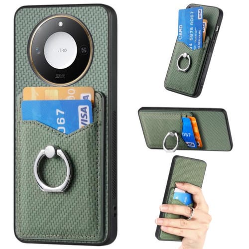 Funda para Teléfono Honor X60 con Anillo y Billetera Fibra de Carbono (Verde)