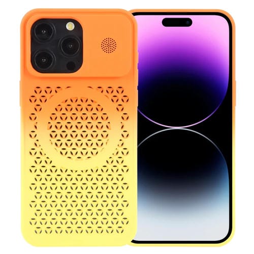 Funda para Teléfono iPhone 14 Pro Magsafe Aromaterapia Refrescante Panal de Abeja (Naranja y Amarillo)