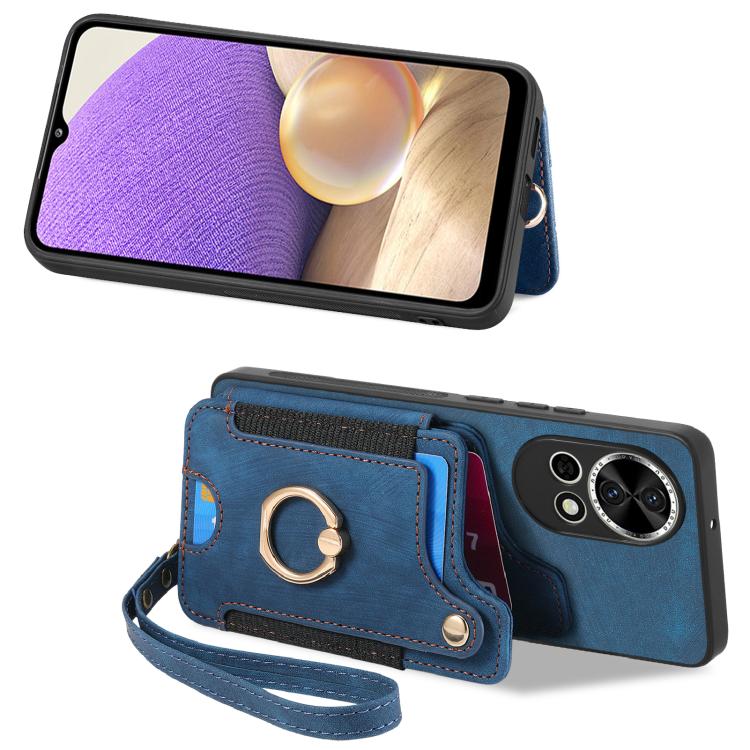 Funda para Teléfono Huawei P60 con Billetera MultiTarjeta, Anillo y Tacto de Piel (Azul)