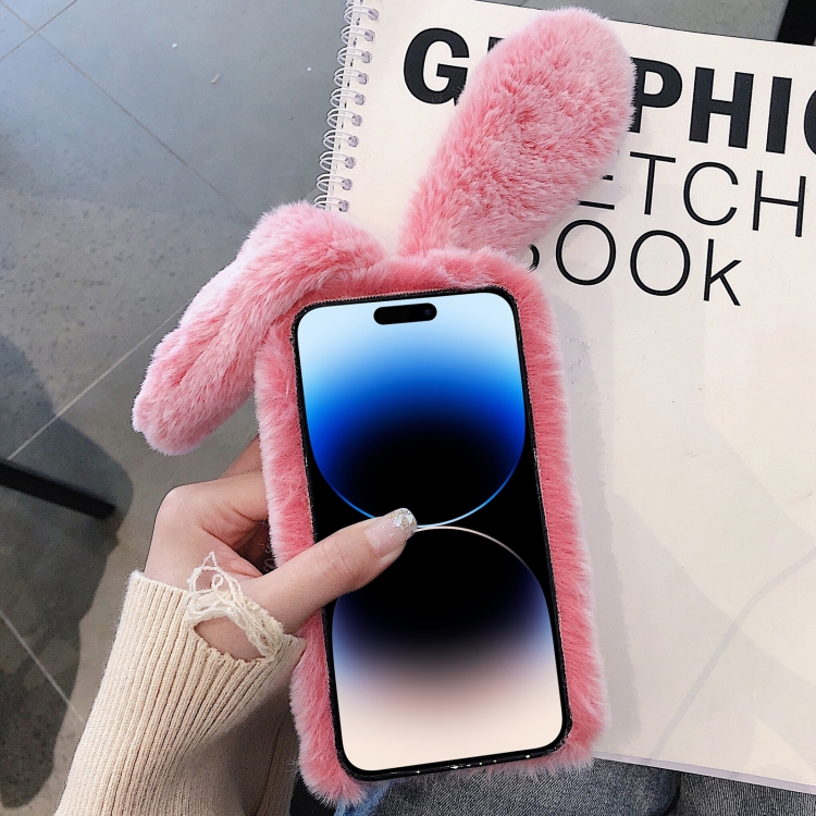 Funda para teléfono iPhone 14 Pro Max cobertura total conejo orejas largas 3D (Gris)