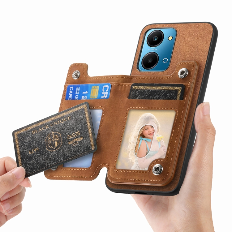 Funda para Teléfono Honor 90 con Cremallera Magsafe Retro, Tarjetero, Cartera (Marrón)