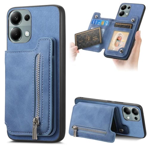 Funda para Teléfono con Cremallera Magsafe Retro para Redmi Note 13 4G (Azul)