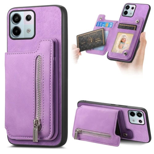 Funda para Teléfono con Cremallera Magsafe Retro para Redmi Note 13 Pro 5G/Poco X6 5G (Morado)