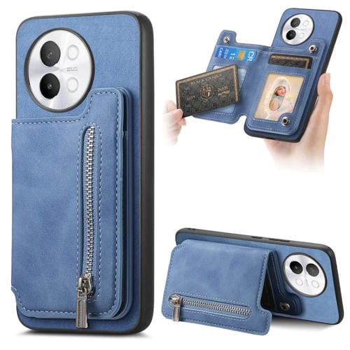 Funda para Teléfono con Cremallera Magsafe Retro para Vivo Iqoo 12 Pro 5G (Azul)