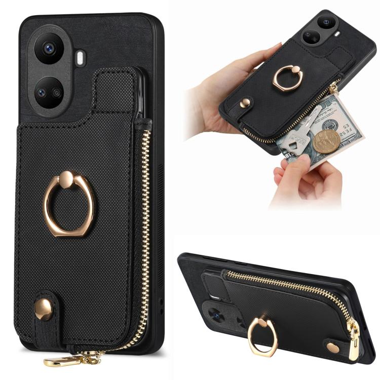 Funda para Teléfono Huawei Nova 10 Se con Cremallera Vertical y Anillo de Cuero Cruzado (Negro)