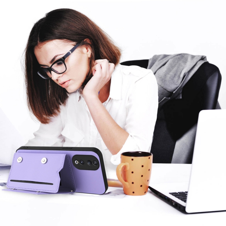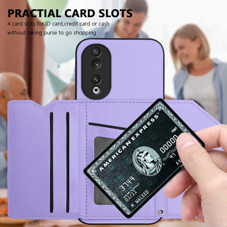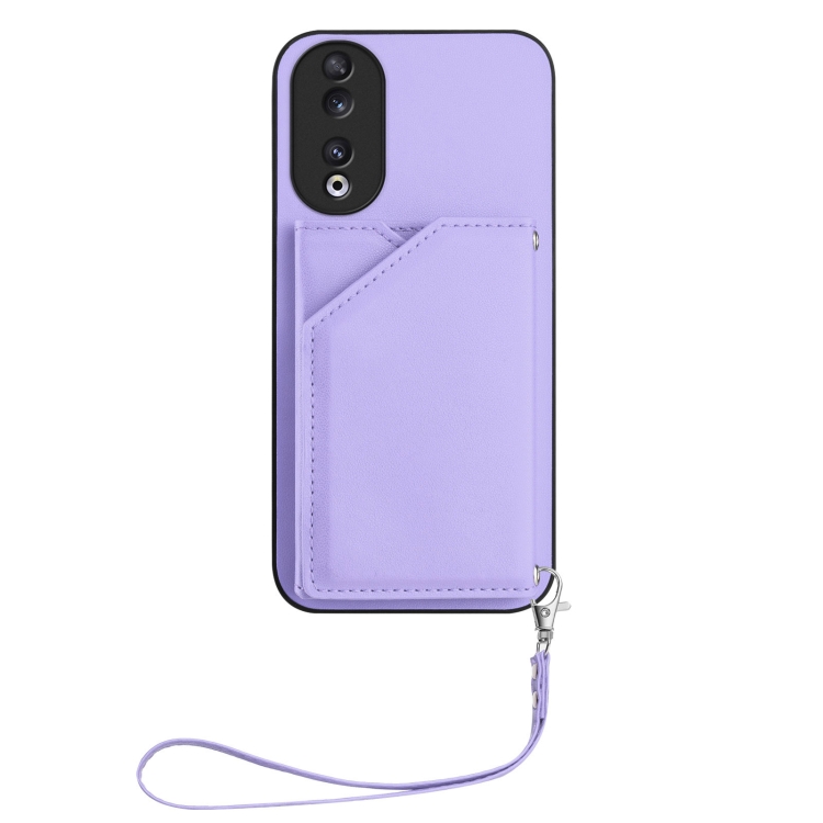Funda para Honor 90 Skin Feel con 4 Ranuras para Tarjetas y Correa para Muñeca (Morado)